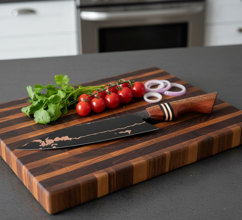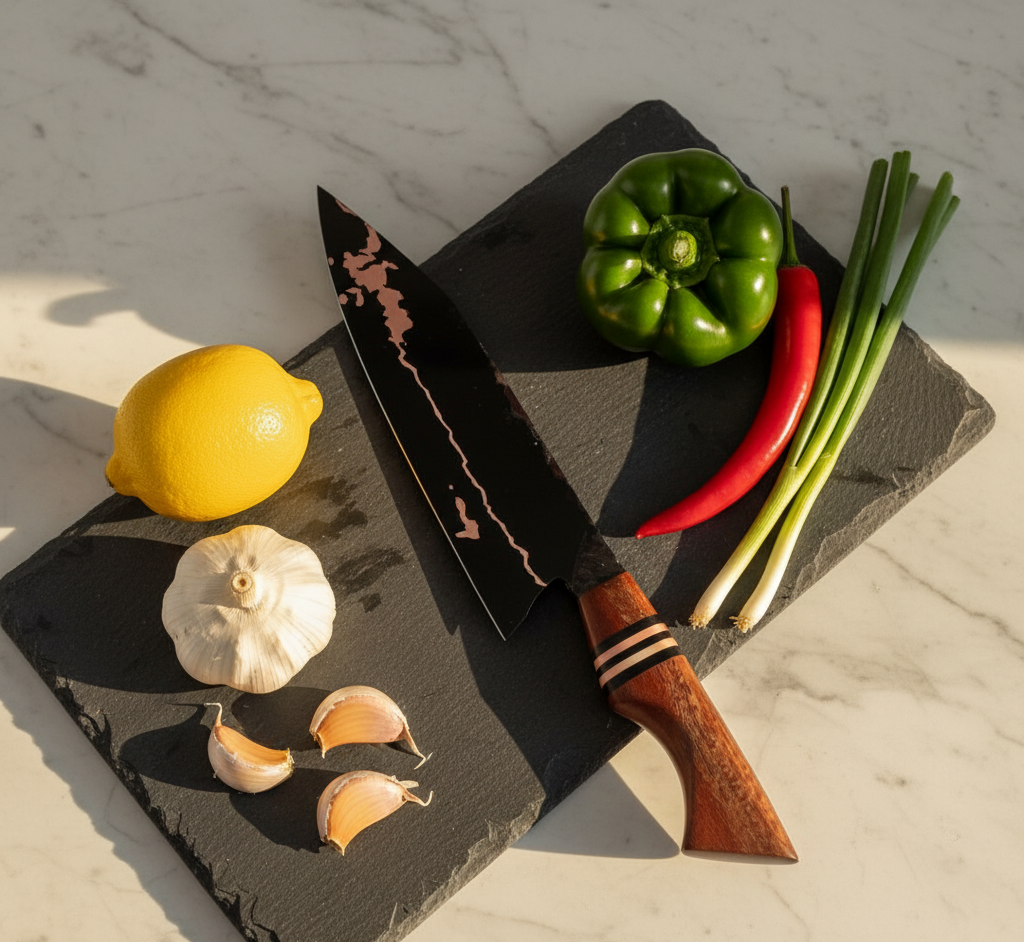 The Chef Knife is the ultimate tool for every kitchen — a perfect blend of traditional craftsmanship and modern performance. Expertly hand-forged by skilled artisans, this knife represents precision, balance, and lasting durability. Whether you’re a professional chef or a passionate home cook, this knife is designed to elevate your culinary experience with every slice.