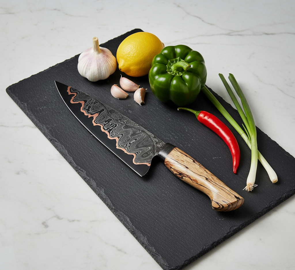 The Chef Knife is the ultimate tool for every kitchen — a perfect blend of traditional craftsmanship and modern performance. Expertly hand-forged by skilled artisans, this knife represents precision, balance, and lasting durability. Whether you’re a professional chef or a passionate home cook, this knife is designed to elevate your culinary experience with every slice.